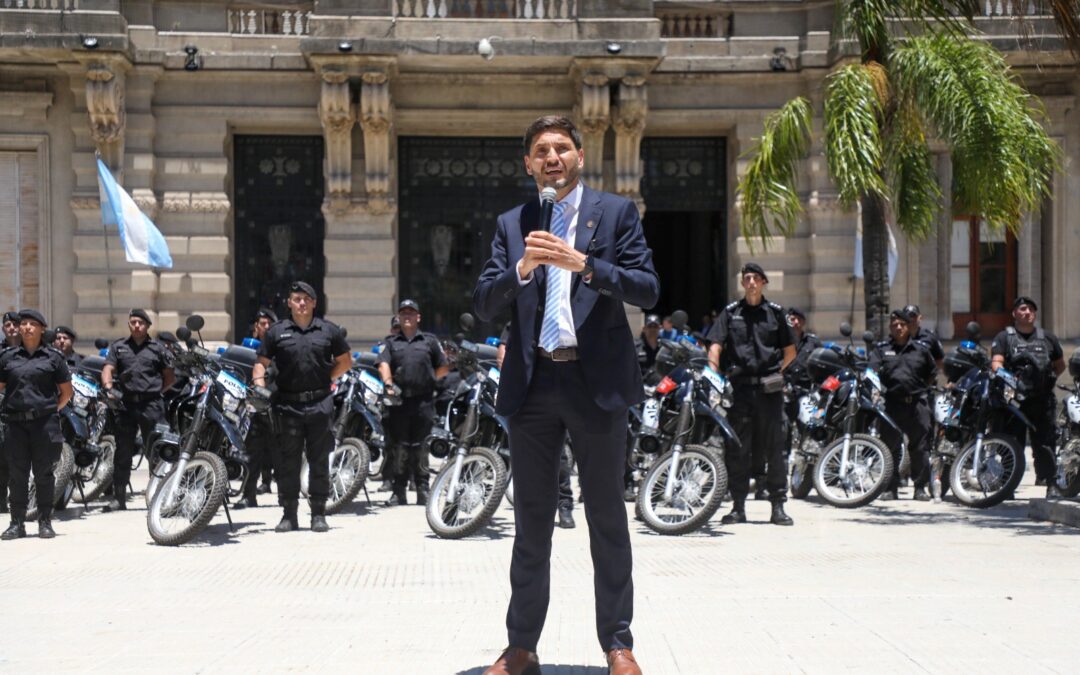 Y aseguró: “Como gestión, cumplimos con nuestra parte: equipamos, compramos patrulleros y motos. En poco tiempo van a llegar sus uniformes, el armamento, la tecnología y las cámaras de seguridad”.