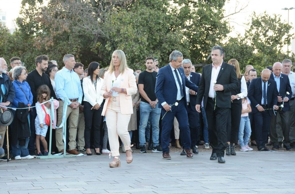 La emotiva ceremonia, que fue posterior a la Vigilia iniciada la tarde de este pasado lunes, en el Cenotafio del Parque del Monumento Nacional a la Bandera, fue organizada de manera conjunta por el Concejo Municipal y el Departamento Ejecutivo, junto con integrantes del Centro de Exsoldados Combatientes en Malvinas y familiares de quienes murieron en el conflicto austral.