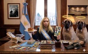 A Karina Milei nadie la votó ni eligió para cargo alguno. Se la conoce en el ambiente político por ser una persona carente de aptitud y capacidad para las tareas que desempeña. La contención emocional de su hermano es su función indelegable. De profesión repostera y tarotista, tiene a cargo el rumbo de una gestión que anda a los tumbos, choca y muy a menudo también vuelta.